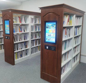 善思智能書架管理系統將讀者常用的檢索、借閱、薦購等功能集成到一個觸控終端設備中,分布式安裝在書架上,實現動態架標、智能檢索、自助薦購、紙電一體借閱等功能,既優化了架標呈現效果與功能,又滿足了閱覽室對觸摸檢索設備和自助借還設備的需求。